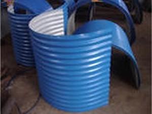 一、四種形式的彩鋼防雨罩中,固定罩和開閉式罩均由鍍鋅瓦楞鋼板或彩色涂層鋼板制成,一般每10個罩位中設(shè)9個固定罩、1個開閉式罩,也可兩種罩交替排列。安裝時,將開閉式罩壓在左右兩個相鄰的固定式罩上,其重合長度為一個波距或兩個波距。注意將開閉式罩有鉸鏈的一側(cè)置于輸送機(jī)非通行邊,而將有鎖扣的一側(cè)置于輸送機(jī)通行邊。